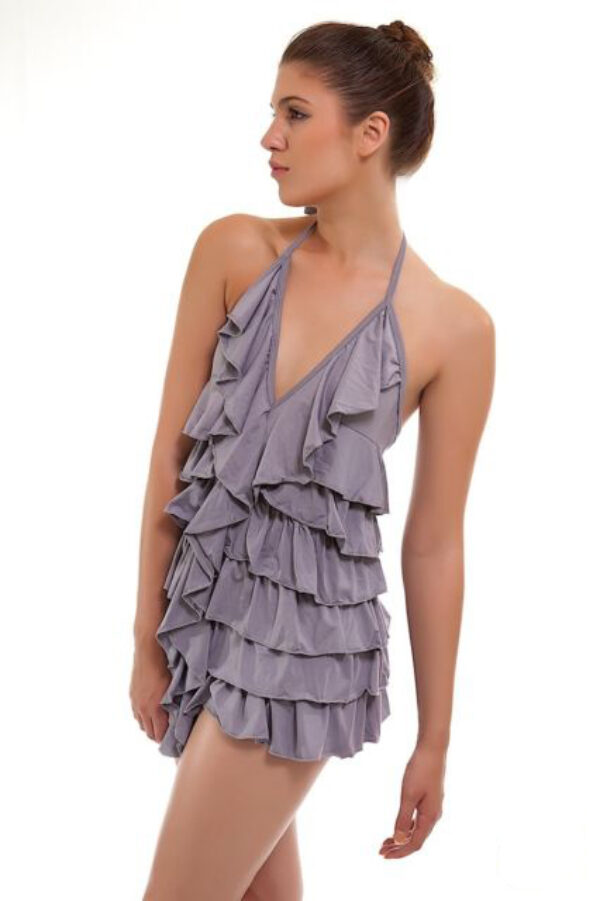 Grey Ruffle Mini Dress Evening & Party Dress S/M/L